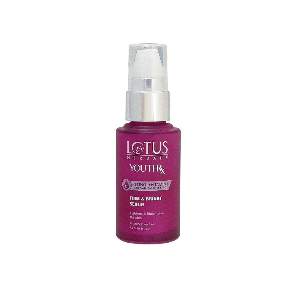 Lotus Herbals YouthRx Firm & Bright Serum is enriched with retinol and vitamin C, a youth compound developed after extensive research on natural source of plant based actives to fight the signs of ageing and enhance radiance. This revolutionary compound constitutes natural extracts of bakuchiol and vitamin C.