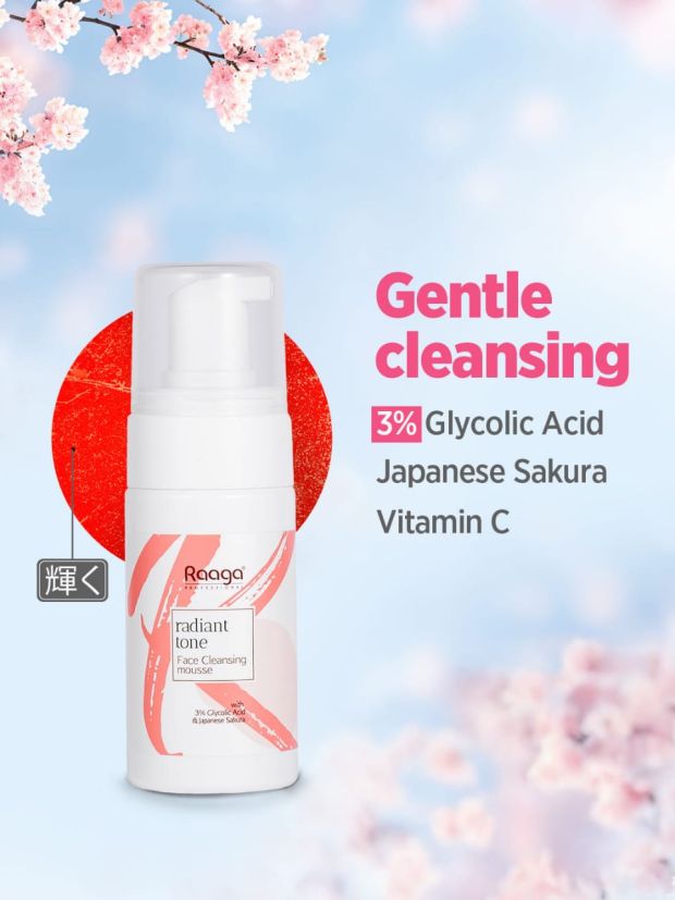 Raaga Professional Radiant Tone Face Cleansing Mousse is your key to refreshed and luminous skin. Powered by 3% Glycolic Acid, it gently exfoliates, removing impurities and revealing a smoother, more radiant complexion. Infused with the delicate essence of Japanese Sakura, this luxurious mousse hydrates and revitalizes, leaving your skin feeling soft, balanced, and visibly glowing. Ideal for daily use, it works to refine skin texture and promote an even skin tone. Rejuvenate your skincare routine with a blend that combines gentle care and potent results for a flawless finish.