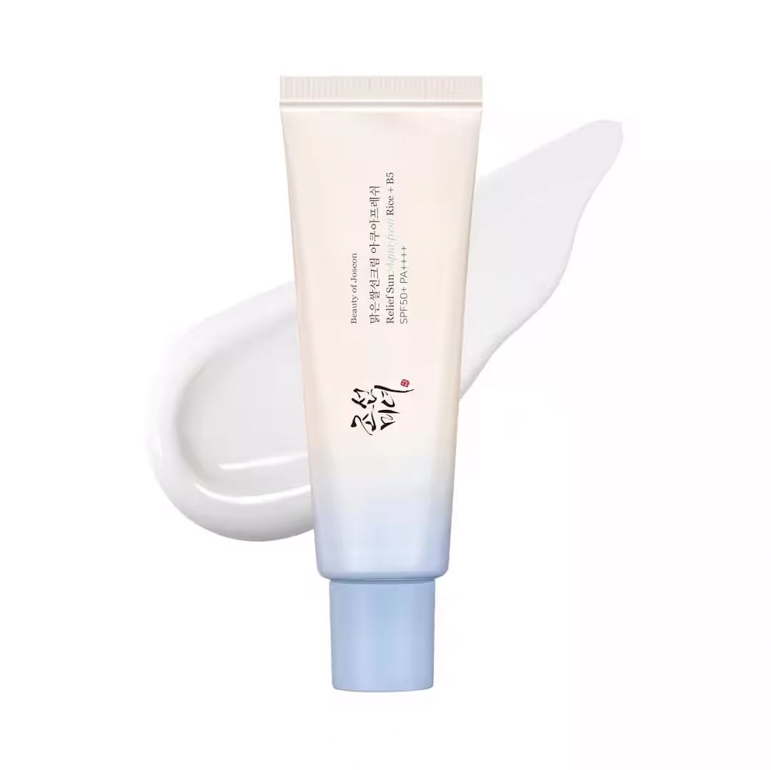 Beauty of Joseon Relief Sun Aqua-Fresh : Rice + B5 (SPF50+ PA++++) is crafted with rice seed water and panthenol to deliver refreshing hydration while safeguarding your skin from harmful UV rays and environmental stressors. Designed for those who prefer a sheer, non-greasy finish, Relief Sun Aqua-fresh provides the same benefits as the original Relief Sun-no white cast, no stickiness-plus enhanced hydration and a quick-absorbing, dewy finish.