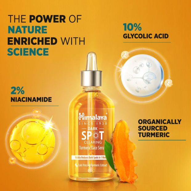 Himalaya Dark Spot Clearing Turmeric Face Serum 30ml | Organically sourced Turmeric | See the result in 7 days | Soap-free | Gives radiant skin | Turmeric and 2% Niacinamide