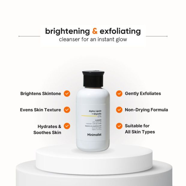 Minimalist 7% ALA & AHA Brightening Face Wash With Vitamin B5 & Glycolic acid For Glowing Skin(100ml).