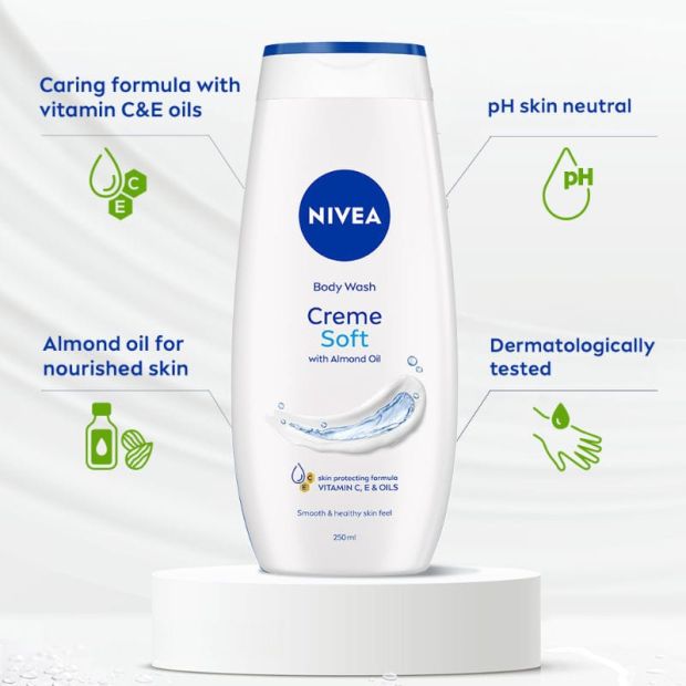NIVEA Body Wash- Creme Soft Naturally Clean & Healthy Skin Natural Almond Oil(250ml).