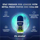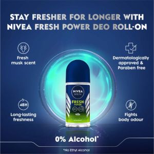 NIVEA MEN Deodorant Roll On- Fresh Power- 72h Long lasting Freshness with Fresh Musk Scent(50ml).