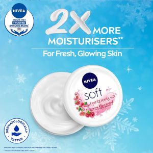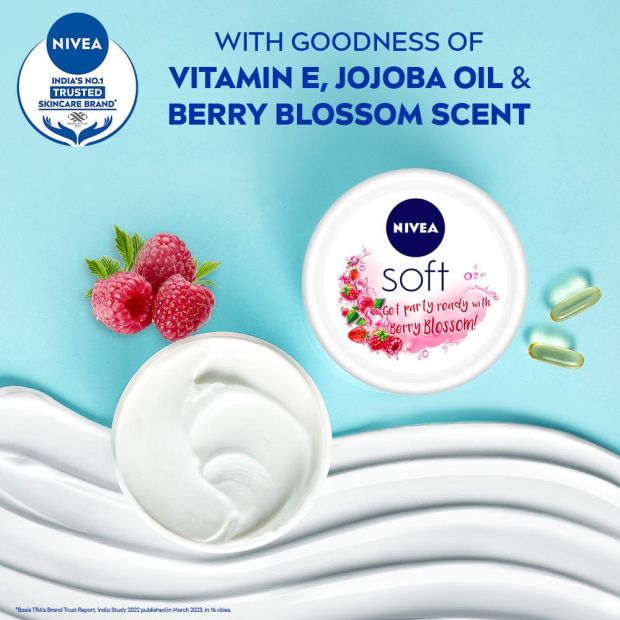 NIVEA SOFT Light cream with Vit E, Jojoba oil & Berry fragrance for Non-sticky, Soft & Hydrated skin.