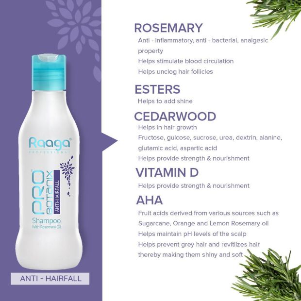 Raaga's ProBotanix range of hair care products come with exquisite choice of botanical extracts to give you beautiful looking hair. The Anti-hair fall shampoo with Rosemary oil, stimulates and rejuvenates hair follicles by increasing blood circulation and thus controls hair fall and promotes new hair growth!