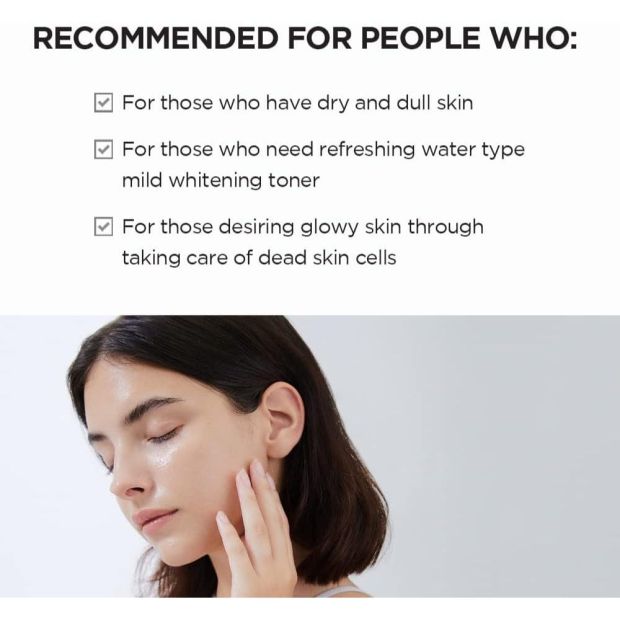 A mild exfoliating toner with fruit extracts, Madewhite™ and Niacinamide prepare the skin for next skincare step.